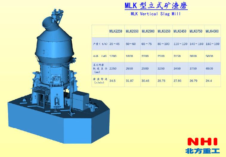 Vertical roller mill is the core equipment of the slag powder production line, the solid waste slag powder produced in the process of steel production is grinded into the high fine slag powder with high value-added, which not only solves the problem of solid waste disposal in iron and steel enterprises, but also brings new profit growth point for the enterprises. NHI has a long history of producing vertical roller mill, which is the first manufacturer of vertical roller mill in China through introducing new technology and won the "Chinese famous brand product" in this field. In 2006, NHI successfully developed MLK series slag vertical mill products on the basis of the original vertical mill technology, and drafted the corresponding industry standard JB/T10997 slag vertical roller mill. In 2007, the first MLK2650 slag vertical mill was successfully put into use in Tianjin Dazhan Cement Plant. By the end of 2019, more than 40 sets of slag vertical mill has been sold out and 3 projects of slag micro powder production line has been contracted, which has accumulated rich field experience and operation data. Through years of practical research and technology upgrading, the company's complete equipment of slag powder production line equipment has the advantages of simple process, low operation and maintenance cost, energy conservation and environmental protection.A complete slag powder production line mainly includes the storage and transportation of raw materials, slag powder mill, ore powder storage and transportation etc several workshops. The slag vertical mill is the core equipment of the production line, where the slag drying, grinding and milling can be finished. Our company has developed 7 specifications of slag vertical mill products according to different scale production line, the production capacity ranges from 30t/h to 160t/h. NHI can undertake the general contracting project of slag powder production line with an annual output of 200,000 tons ~ 1.2 million tons. NHI can also carry out customized development according to the actual production capacity needs of users.